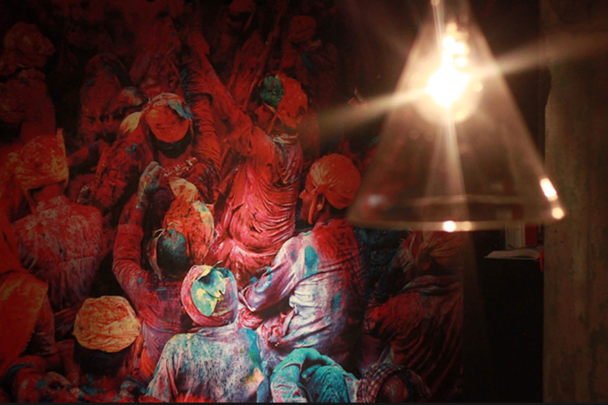 Super wall graphic Holy festival imagery with crazy moody lighting, open kitchen with huge tandoor ovens and an open bar for that essential Indian gin and tonic, large format shard tables for that casual atmosphere and hidden tables for a more intermit evening.